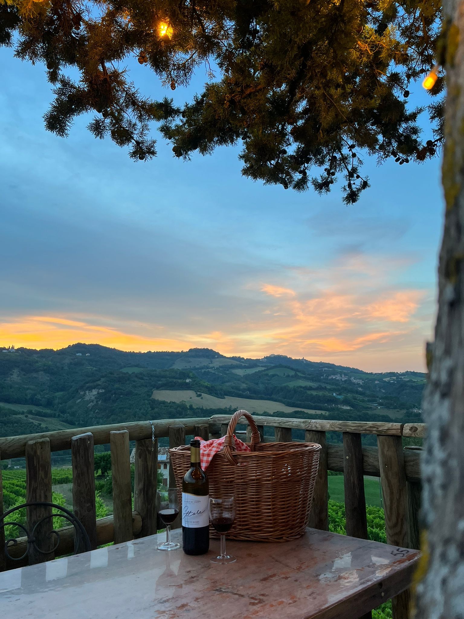Il picnic sull’albero comprende un panino con porchetta fatto da noi con pane al pomodoro e porchetta cotta a bassa temperatura, selezione di salumi marchigiani con focaccia o pane fresco, insalata di farro e una bottiglia a scelta tra Passerina, Passerina Spumante e Rosso Piceno Superiore.